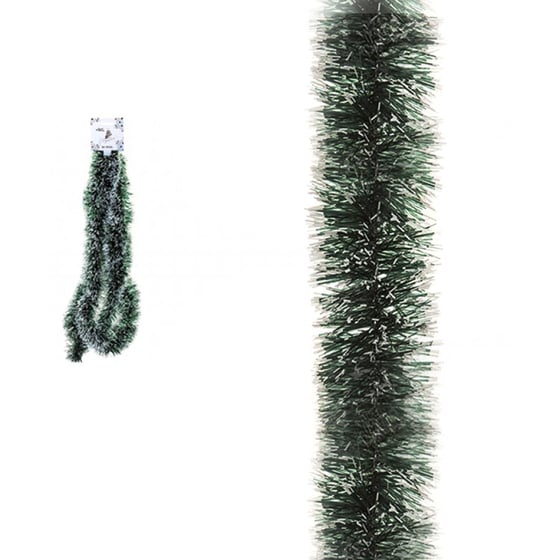 This Traditional tinsel with snow tips, is perfect for matching the vibe of the Christmas tree, wherever you'd like! Put it on the bannister of the stairs, on the fireplace or on the table.