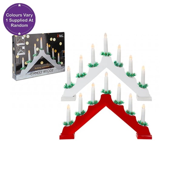 Christmas Led Wood Candle Bridge Red/White