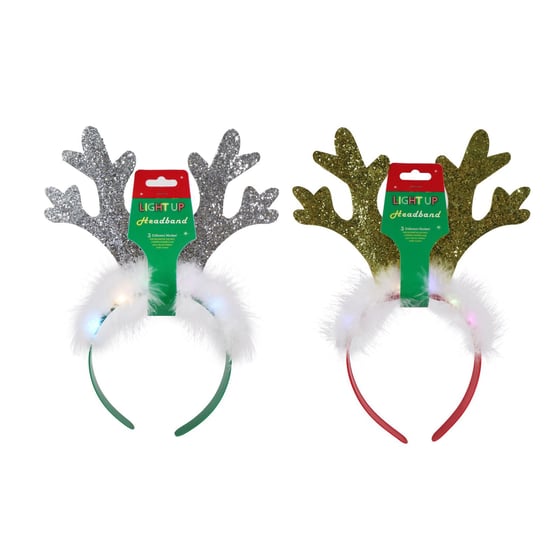 Christmas Light Up Antlers Glitter Headband Assorted