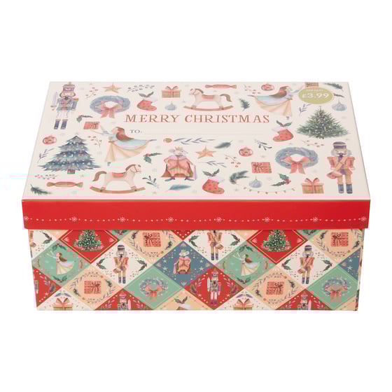 Available in small, medium, and large sizes, each sturdy box is built to hold its shape securely, ensuring no sagging corners or awkward bulges. From books and knitwear to toys, hampers, and keepsakes, every box size serves a distinct purpose—so your presents feel considered and tailored. The striped inner lining adds a finishing touch, while the rigid design makes them reusable year after year. Perfect for time-pressed gifters who still want thoughtful presentation, the Christmas Nutcracker Print Gift Box blends practicality with tradition, creating gifts that look as memorable on the outside as they do on the inside.