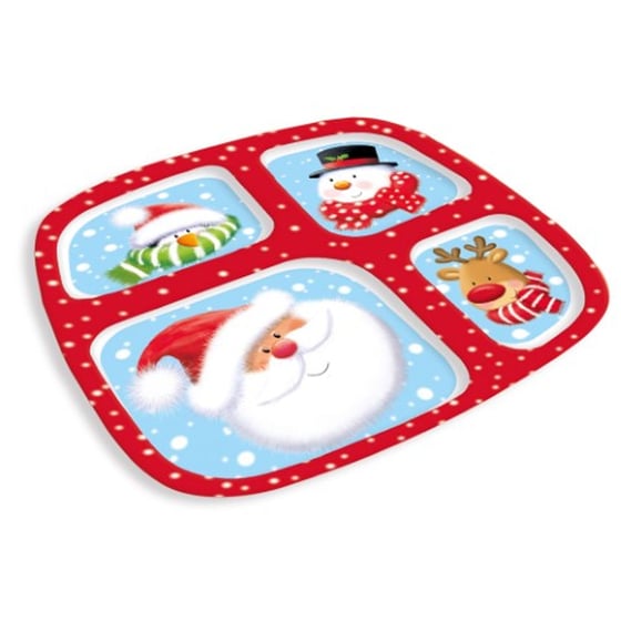 Serve a true Christmas treat this winter with this fantastic melamine 4-section tray which the little ones will love as each section features a cartoon Christmas character including Santa, a reindeer, a penguin and a snowman.