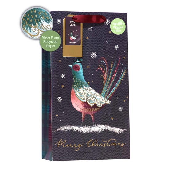 Give your loved ones their favourite Christmas drink in a beautifully illustrated double bottle bag. Gift giving can often be the most heartwarming part of the Christmas season, so show them just how much you care by presenting them with this bottle bag holding all of their gifts. Made from recycled paper, you won't need to worry about using plastic bags which are bad for the environment. Instead, you can be happy in the knowledge that not only care has gone into the presents themselves, but also that care has been put into the making of this bottle bag. An accompanying gift tag delightfully compliments the design of the bottle bag, so that you can write a heartfelt little note to go alongside the bottles within.