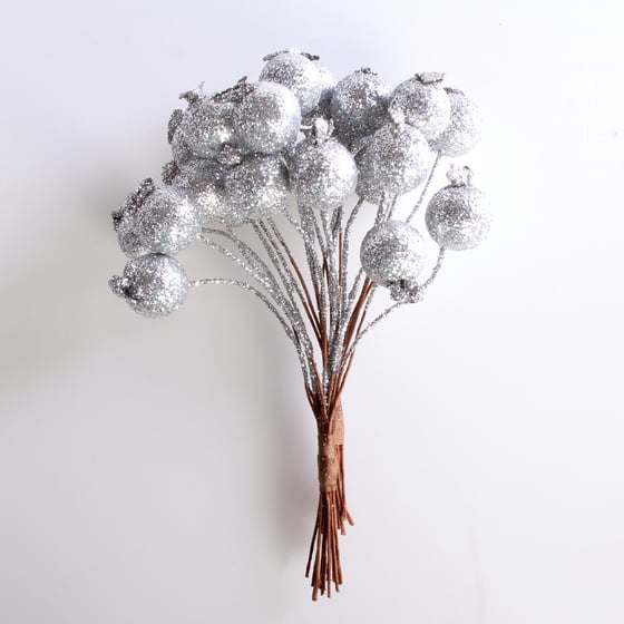 Add some elegance to your home decorations with these beautiful berry picks. Carefully designed to be able to fit perfectly into any home, it is sure to be a talking point for all of your guests. Display on its own, or add to a display with other florals. You will be able to express your creativity and eye for design with the addition of these artificial berry stems. The sparkling silver shine on the berries and carefully twirled stems make them look naturally realistic and perfect to craft with. Really get into the festive mood with the addition of these stunning berries to your home. Christmas doesn't always have to be about the big and the bold, sometimes the best decorations are those that have a traditional elegant beauty.