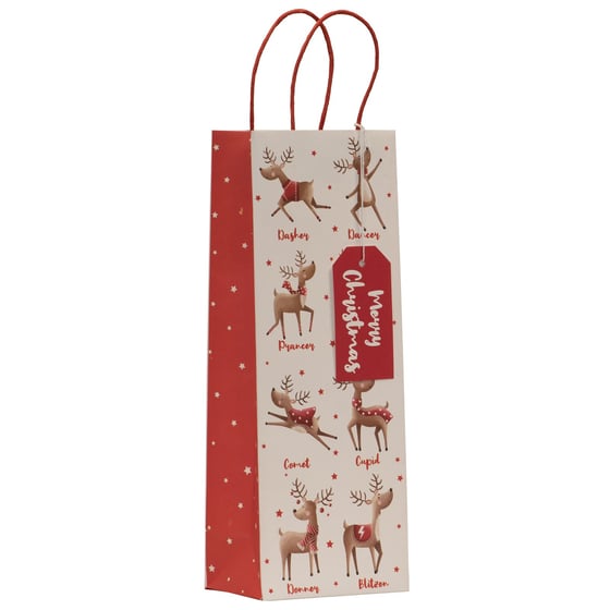 Give your loved ones their Christmas presents in a beautifully illustrated bottle bag. Gift giving can often be the most heartwarming part of the Christmas season, so show them just how much you care by presenting them with this bottle bag holding all of their gifts. Made from long-lasting high-quality materials, you won't need to worry about using plastic bags which are bad for the environment. Instead, you can be happy in the knowledge that not only care has gone into the presents themselves, but also that care has been put into the making of this bottle bag. An accompanying gift tag delightfully compliments the design of the bottle bag, so that you can write a heartfelt little note to go alongside the presents within.