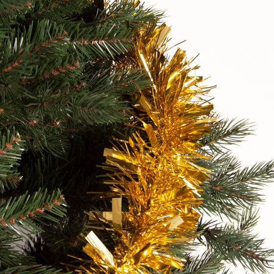 This thick and thin tinsel is very sparkly when the light hits it on the tree.