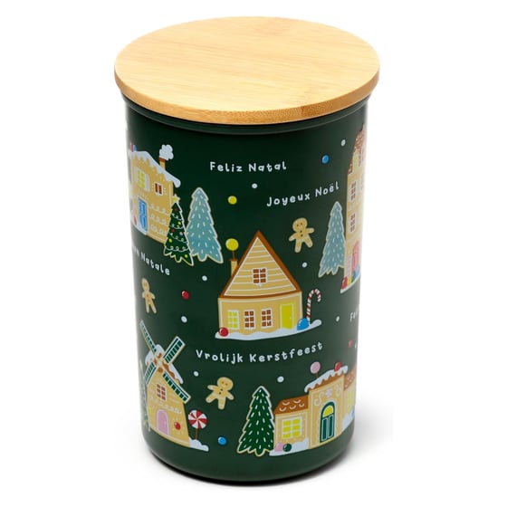 Transform your kitchen storage with this charming Baker Street storage jar featuring a delightful Christmas Village design. This elegant jar combines style with practicality, offering an enchanting way to store your seasonal treats, biscuits, or kitchen essentials. The jar showcases a festive winter scene that brings holiday cheer to your countertop or shelf display. Crafted with RPET material and finished with a premium bamboo lid, this storage solution marries contemporary materials with traditional design elements. The secure lid helps maintain freshness whilst adding a natural accent to the overall aesthetic. Perfect for creating a coordinated Christmas theme in your kitchen or as a thoughtful seasonal gift. The jar's transparent body allows you to easily monitor contents, whilst the decorative exterior adds a magical touch to your holiday décor.