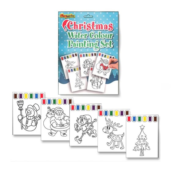 This Christmas-themed watercolour painting set contains 5 sheets to paint.