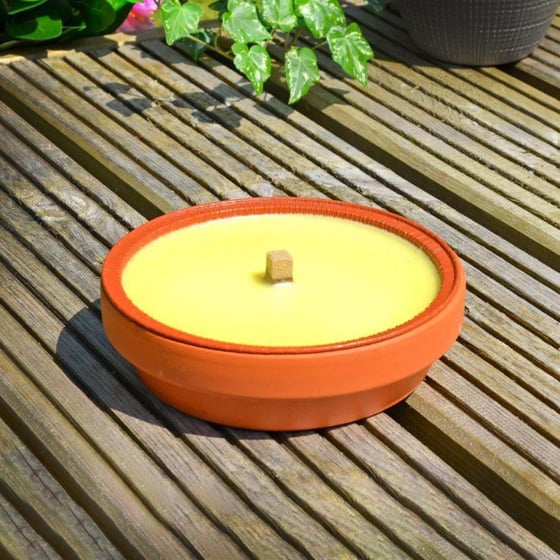 Citronellas terracotta pot candle is scented with high-quality citronella fragrance for outdoor use. Keep small insects like midges and flies at bay during the summer evenings with this gently fragranced citronella candle.