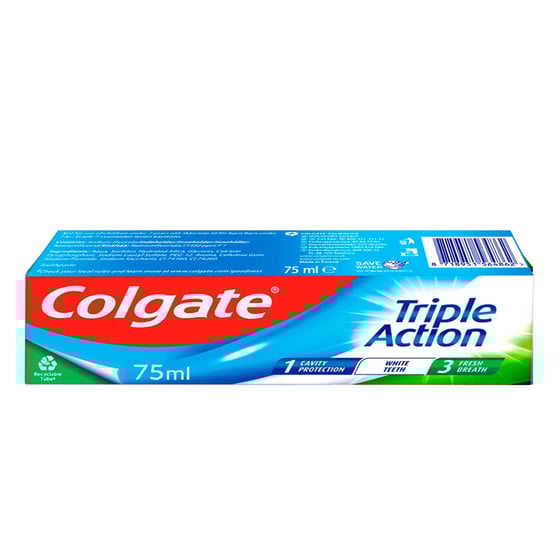 Colgate Triple Action Toothpaste provides triple benefits with proven cavity protection.