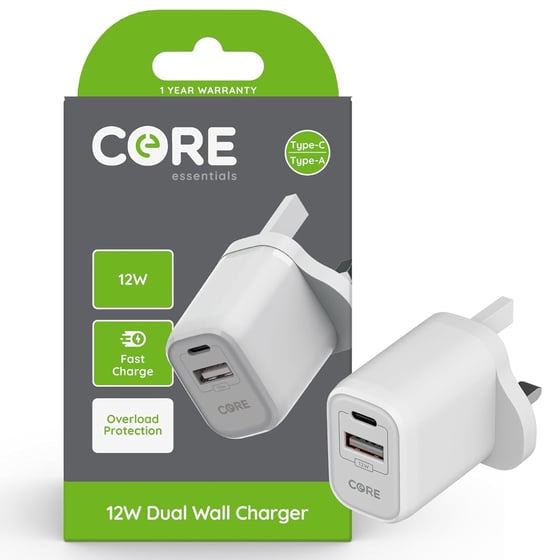 Core Essentials Dual USB A + USB C Wall Charger Plug