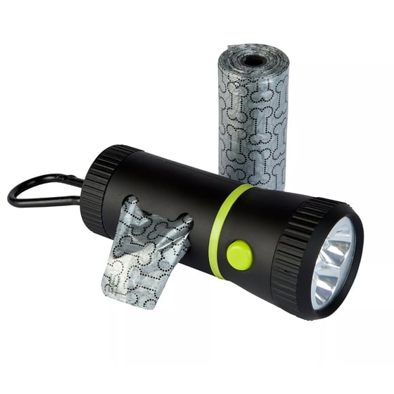 Creative TV Dog Walking Torch In Black With 40 Poo Bags