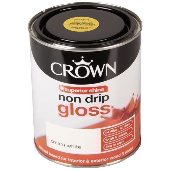 Achieve a superior shine with Crown Cream White Non-Drip Gloss Paint.