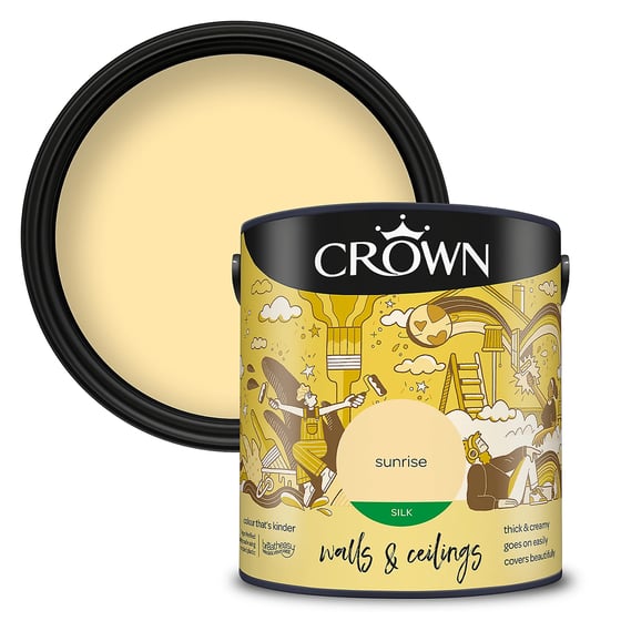 Elevate your living spaces with this premium paint that glides on effortlessly and dries to a stunning silk-like finish. Its superior coverage and durability make it perfect for busy households, while the low-odour formula ensures a pleasant, fume-free painting experience. Rediscover the beauty of your walls and ceilings with Crown Sunrise.