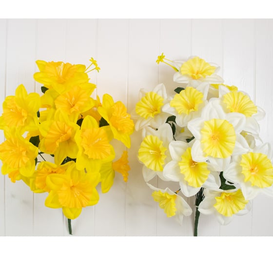 The Daffodil Bouquet Artificial Flowers are assorted and you will receive one colour picked at random from our assorted stock. Orders for more than one item may receive different colours but could receive all of the same colour. Unfortunately, we are not able to accept requests for a particular colour before or after purchase.