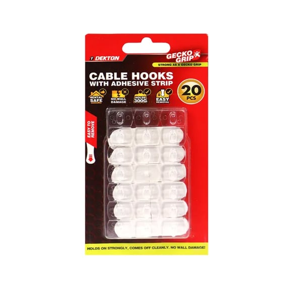 Tidy Your Cables Or Hang Lights Without Damaging Walls With Dekton Geckogrip Cable Hooks – 20 Adhesive Clips For A Clean, Secure Hold.