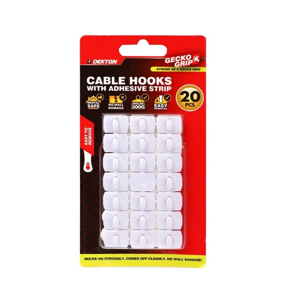 Tidy Cables Or Hang Décor Without Damage Using Dekton Geckogrip Cable Hooks – 20 White Self Adhesive Clips For Secure, Invisible Support.