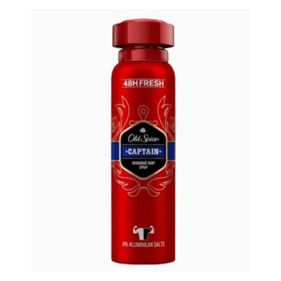 Old Spice Captain deodorant body spray 150ml long lasting fragrance for daily freshness ✓ Bold masculine scent ✓ 24 hour protection ✓ Easy spray application.