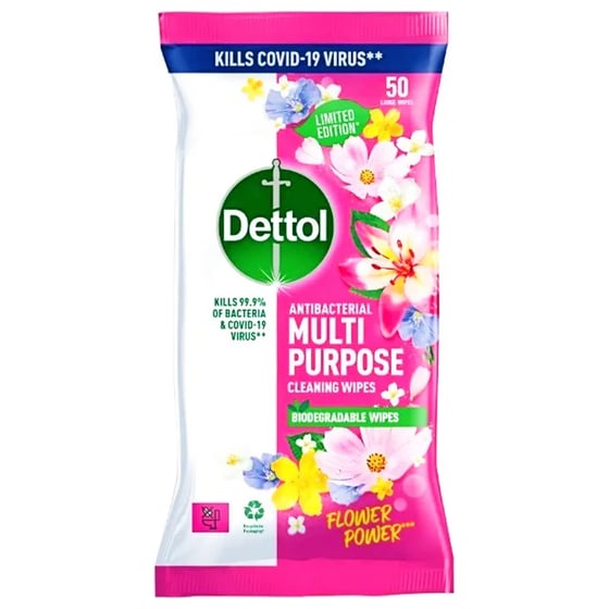 Effectively clean and disinfect a variety of surfaces with Dettol Antibacterial Multi Purpose Cleaning Wipes 50 Pack.