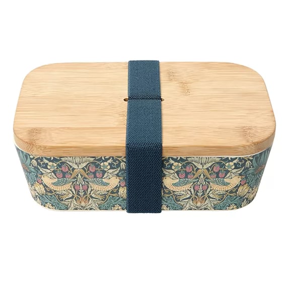 Elevate your lunch experience with this exquisite rectangular lunchbox featuring the timeless Strawberry Thief pattern by Morris & Co. This beautifully designed teal-coloured box brings a touch of artistry to your daily meal storage. The classic pattern, originally designed by William Morris in 1883, showcases a mesmerising arrangement of birds and strawberries, making this lunchbox a sophisticated choice for work, school, or picnics. The rectangular shape offers practical storage space for your meals whilst maintaining a slim profile that fits comfortably in bags. Perfect for those who appreciate both functionality and aesthetic appeal in their everyday items. The box is lightweight yet durable, making it an ideal companion for your daily routine. Its elegant design makes it suitable for various occasions, from casual outings to formal workplace settings.