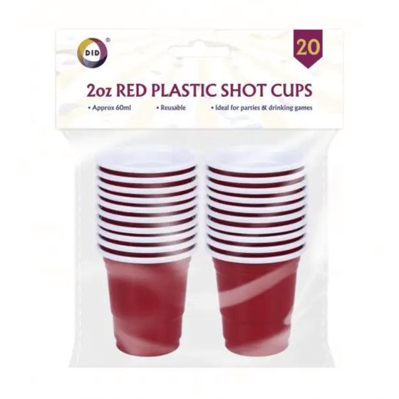 DID 2oz red plastic shot cups 20 pack small disposable cups for parties and events ✓ Bright red colour ✓ Durable plastic design ✓ Handy 20 pack.