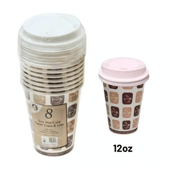 DID 8oz Hot/Cold Paper Cups & Lids 8 Pack