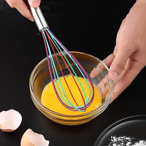 The multicoloured silicone whisk from Dina is perfect for beating, blending, whisking and stirring when you're baking.