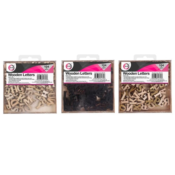 Dinas 104 Pack of wooden letters allows you to decorate walls, doors, cards, and any other craft ventures you might have! With these alphabetical wooden letters, including at least 3 of each letter, and more of the extra common letters!