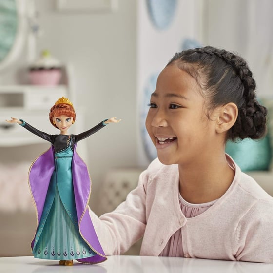 Experience the magic of Disney's Frozen with the musical adventure Anna singing doll! With the push of a button, Anna comes to life singing her iconic song.