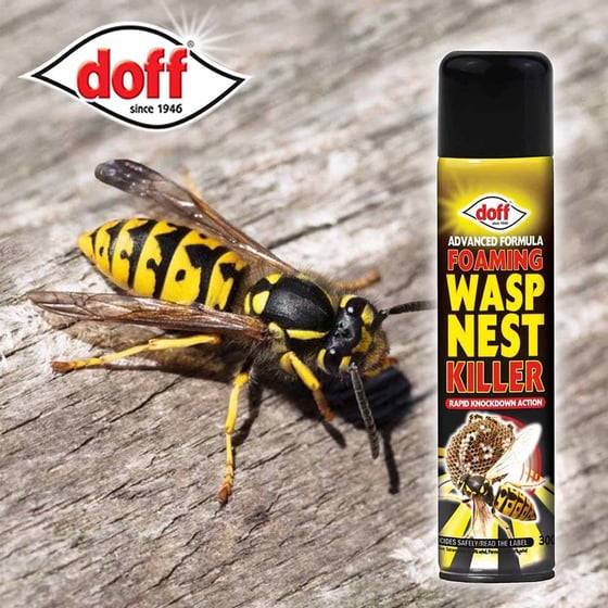 Doff advanced formula foaming wasp nest killer is an insecticide for amateur use against wasps, fleas, moths, and mosquitoes, for use in and around the home. The rapid knockdown action kills wasps in their nests.