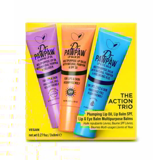 Refresh dry lips and tired skin instantly with the Dr. Paw Paw Lip and Eye Balm Action Trio for everyday hydration and protection.