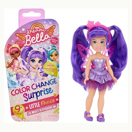 The Colour changing surprise fairies encourage hours of imaginative storytelling and fairy-themed adventures. Spark your child's creativity and bring the enchantment of the forest into your home. Dip your doll in a bath to reveal which fairy you got! Each doll has five points of articulation, allowing you to have more fun during playtime! The surprise includes fashion, wigs, wings, a crown, heels, and tons more celestial accessories.