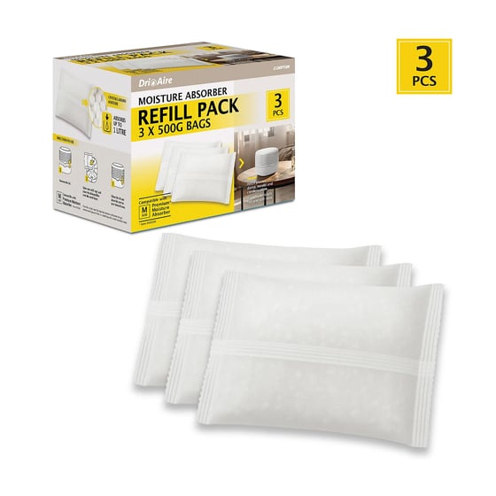 Keep Your Dri Aire Dehumidifier Working Its Best With These 3 x 500g Refill Bags – Pre-Measured, Powerful And Effortless To Replace.