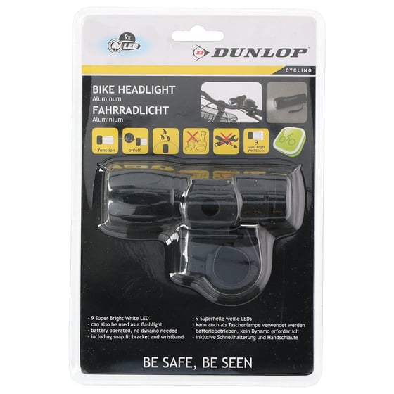 Keep your bicycle rides safer with the Dunlop 9 LED bike head light.