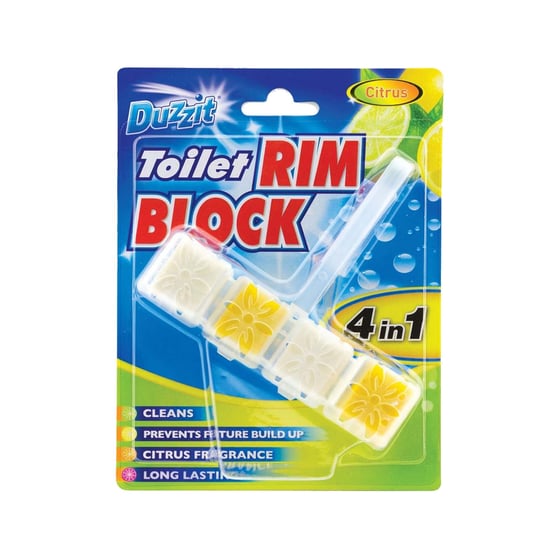 Easily clip the Duzzit 4 in 1 Citrus Toilet Rim Block onto your toilet rim, and leave your toilet clean and fresh after every flush.
