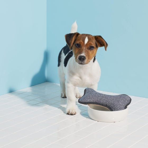 It's distinctive shape means you won't inadvertently use it on last night's lasagne pan. It's so easy to use as you simply dampen with water and put the game-changing microfibers to work. Use the textured side to dislodge stuck-on kibble. Use the soft side to remove grease and grime.