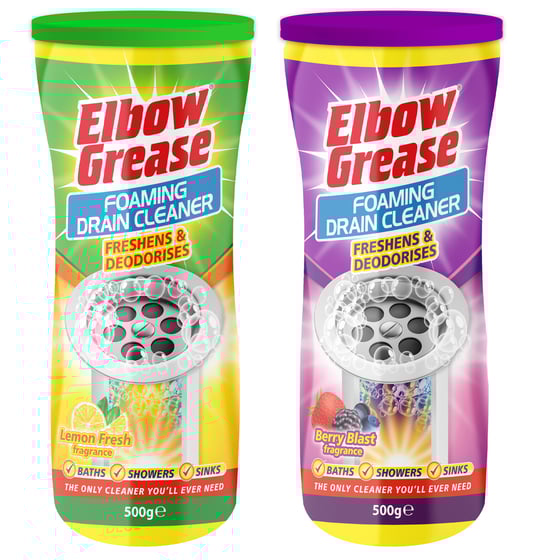 Few things are more frustrating than a sink or shower that drains slowly and gives off an unpleasant smell. Elbow Grease Foaming Drain Cleaner 500g makes light work of these everyday issues with its powerful foaming action that reaches into plugholes and pipes. The foam expands to cling to dirt, grime, soap scum and grease, breaking it down effectively while releasing a fresh fragrance. Available in Lemon Fresh or Berry Blast, this simple but effective cleaner ensures your drains not only work better but also smell inviting, making it an essential for kitchens, bathrooms and utility rooms alike.