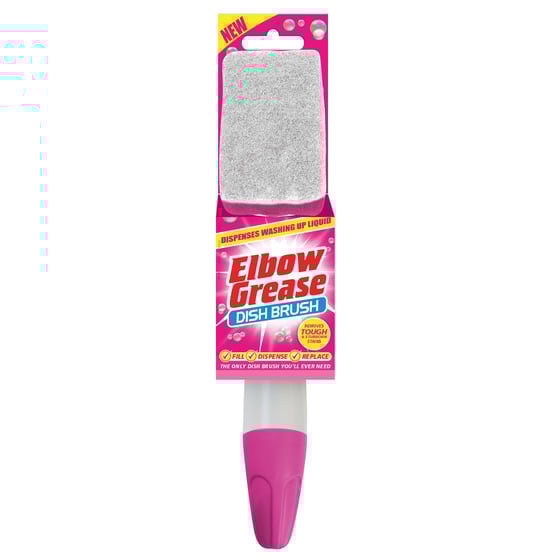 Tackle tough jobs with the Elbow Grease Pink Dish Brush! Combining washing up liquid and a scouring sponge with a long and comfortable handle, the dish brush makes light work of cleaning crockery, pots and pans.