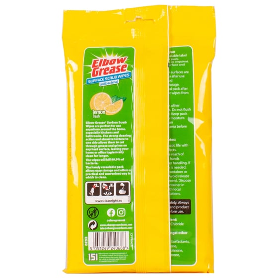 The Elbow grease pack of 24 wipes is the only cleaner you'll ever need to cut through grease, and grime on hobs, worktops and baths plus it will kill 99.