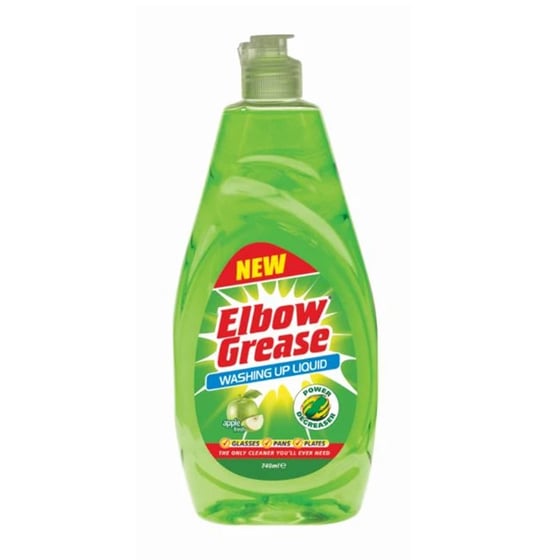 The only cleaner you'll ever need is this 740ml elbow grease washing up liquid. This apple fresh power degreaser will make your glasses, pans and plates sparkling clean.