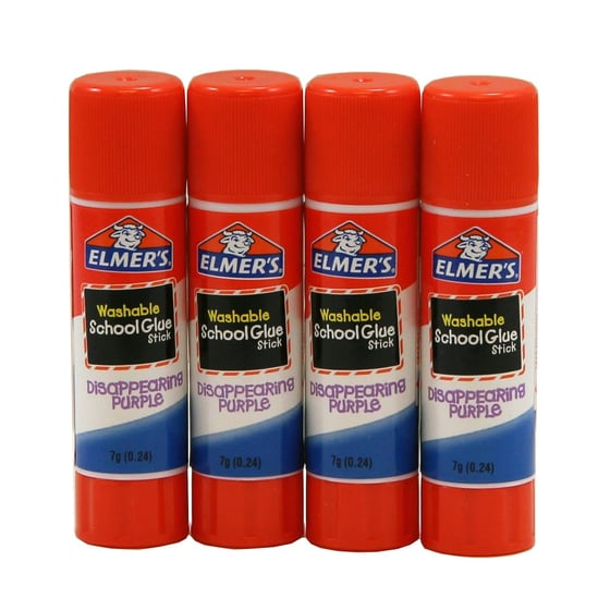 The washable disappearing purple glue sticks from Elemer's are ideal for school projects, paper, decorations, artwork, fabric and mount pictures.