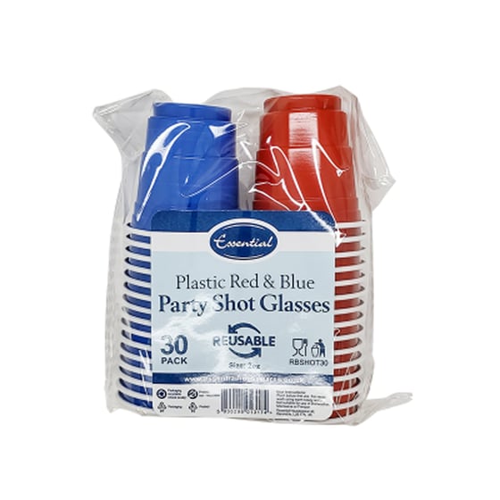 Essential Shot Glasses Red and Blue Plastic Cups 30 Pack