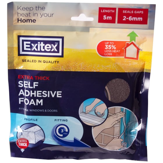 Exitex have solved this problem to be able to keep the heat in your home and even up to 35% of less heat loss with this extra thick Self Adhesive Foam. Correctly seal windows and doors with this draught excluder which can result in energy savings up to 35%.