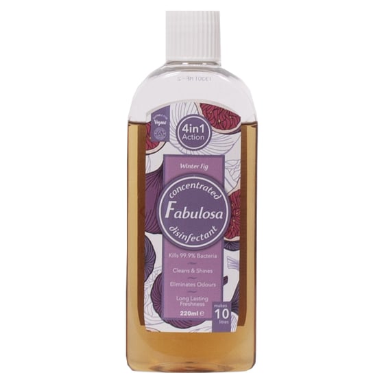Fabulosa disinfectant is an effective household cleaner that kills 99.9% of bacteria while providing a clean and shiny finish and eliminating odours, each 220ml bottle will dilute to make 10 Litres of cleaning fluid.