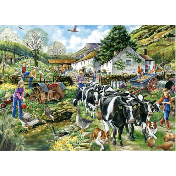 The Falcon Country House Retreat jigsaw is a beautiful depiction of a wonderful autumn day on the farm in the North of England where you can see acres of land with a farm full of animals including chickens, sheep, and geese plus the honey buzzards flying high above.