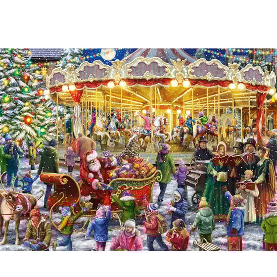 The Christmas Carousel jigsaw from Falcon is a wonderful Christmas-themed illustration that comes with a free 1,000-piece jigsaw puzzle and both jigsaws are part of the fantastic festive Falcon de luxe Christmas puzzle theme.