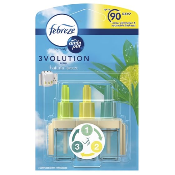The Febreze 3volutuon refill botanic breeze will clean away any tough and lingering odours while also leaving a light fresh scent for up to 90 days.