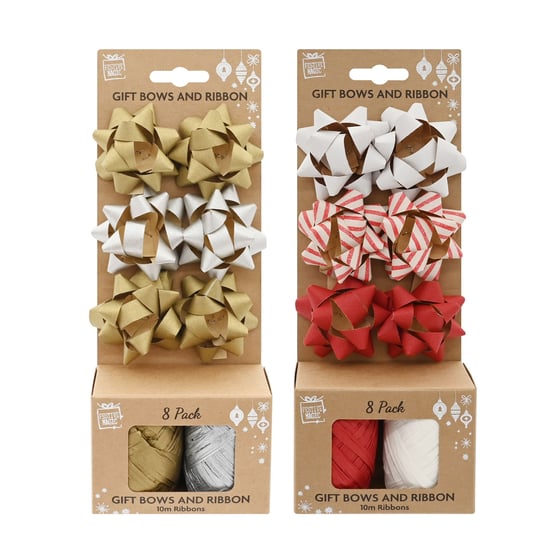 Take the stress out of gift wrapping this Christmas with the Festive Magic Christmas 8 Piece Gift Wrapping Set. Each pack contains six matching bows and two coordinating 10m ribbon spools—giving you everything you need to create beautifully finished presents that look as thoughtful on the outside as they are inside. Designed in classic festive colour combinations, these sets bring elegance and ease to your seasonal wrapping.