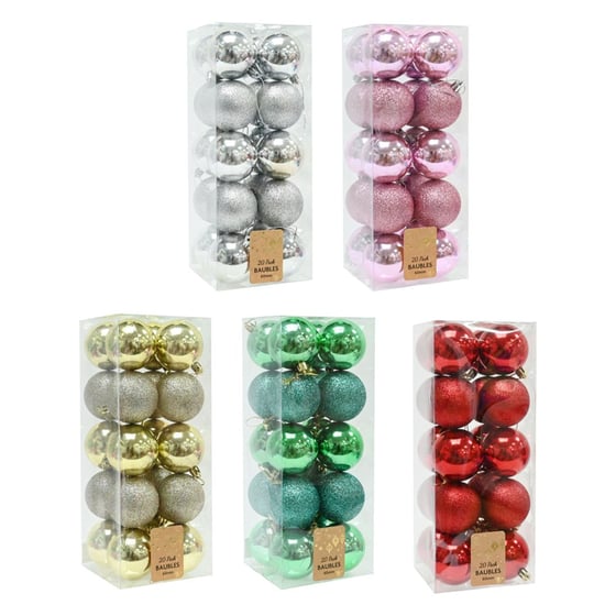 Add some festive magic to your Christmas décor with the 60mm 20 pack of Christmas baubles. These beautifully crafted ornaments will add a touch of charm to your tree and create a festive atmosphere that everyone will enjoy. Bring the Christmas spirit into your home with these Christmas baubles. The 20 pack of baubles includes 2 different designs including plain and glitter to bring a pop of colour to your Christmas tree. Made from durable shatterproof plastic, they can be used again & again.