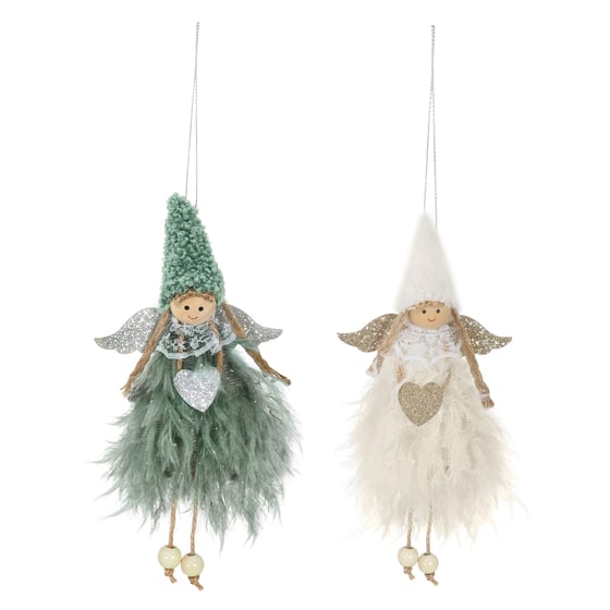 Bring a magical touch to your festive decorating with these charming fairy hanging decorations from the Festive Magic collection. Each one features a delicately crafted design with soft, fluffy textures, sparkly wings, and a tall princess-style hat that adds height and elegance to your Christmas tree or seasonal displays. With sweet facial details, plaited hair, and shimmering heart embellishments, these decorations strike just the right balance of fairy-tale and festive—perfect for creating a woodland or storybook-inspired theme in your home.