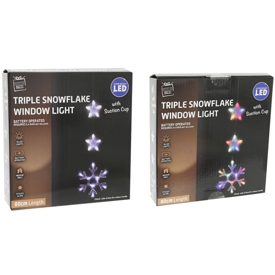 Add Instant Festive Charm To Your Home With The Festive Magic Triple Snowflake Window Light – No Sockets Or Stress Required.